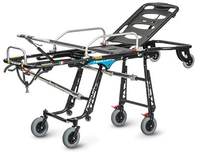 Mercury Lite Cinque, barella autocaricante in alluminio a 5 posizioni con 4 ruote girevoli versione alta - certificata EN 1865 e completa di materasso e cinture