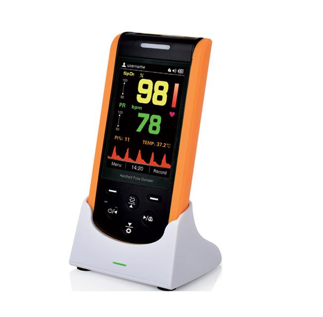 Pulsossimetro Oxy-110 Grande display TFT 3,5" autorotante per SpO2, PI, pletismogramma, pulsazioni (PR) e temperatura. Tecnologia SpO2 brevettata MoveOxy™ con rimozione degli artefatti e protezione contro il movimento. Varia scelta di sonde SpO2 per adulti, bambini e neonati.Batteria al litio integrata, fino a 18 ore di monitoraggio continuo. Limite allarme, altezza suono, tono tasti e luminosità regolabili. Fino a 580 ore di dati SpO2 archiviati.